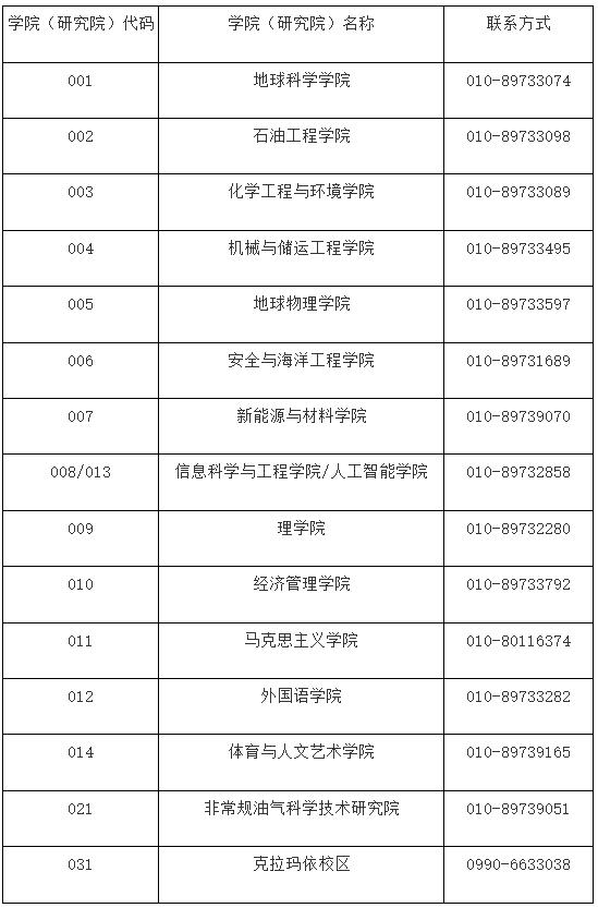 (一)研究生院招生办公室联系电话:010-89733075,电子信箱:sdyzb@cup.edu.cn。